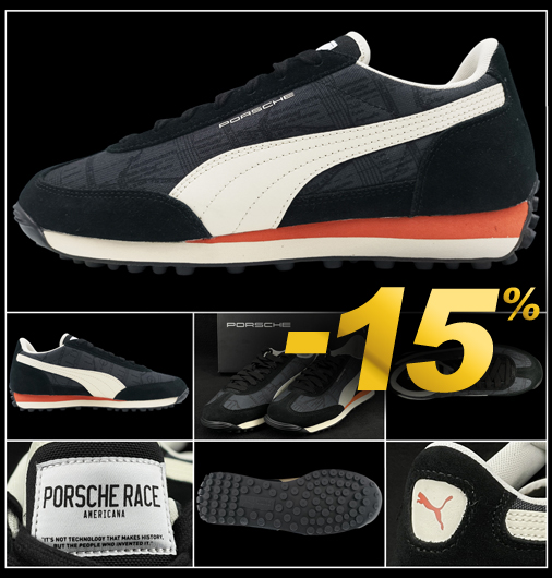 Chaussure mixte Porsche Easy Rider Matière Cuir de vache - Doublure en textile - Semelle rigide en Caoutchouc de haute qualité Couleur Noir - Inclus 2 paires de lacets Noir / Blanc cassé Puma 309088-01