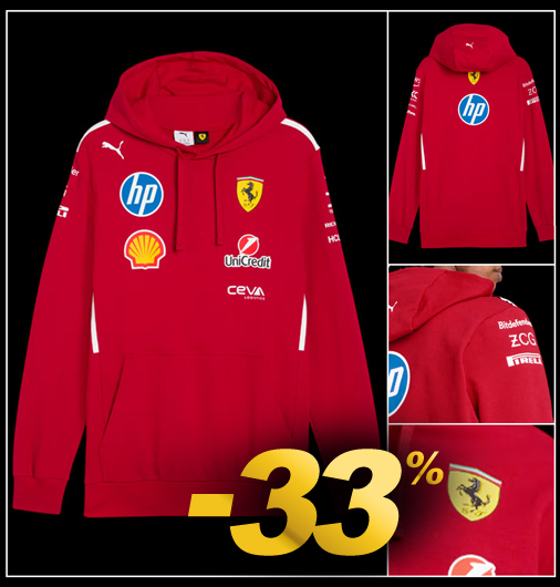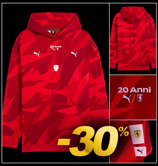 Hoodie mixte Collector Ferrari F1 20 Ans Matière 66% Coton / 34% Polyester - Couleur Rouge Capuche fixe - Poche kangourou Puma 632759-02