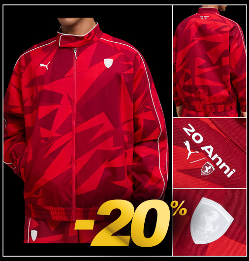 Veste mixte Collector Ferrari F1 20 Ans Matière 100% Coton - Couleur Rouge - Coupe oversize Fermeture zippée - 2 poches latérales zippées Col à scratch - Taille et manches élastiquées Puma 633944-02