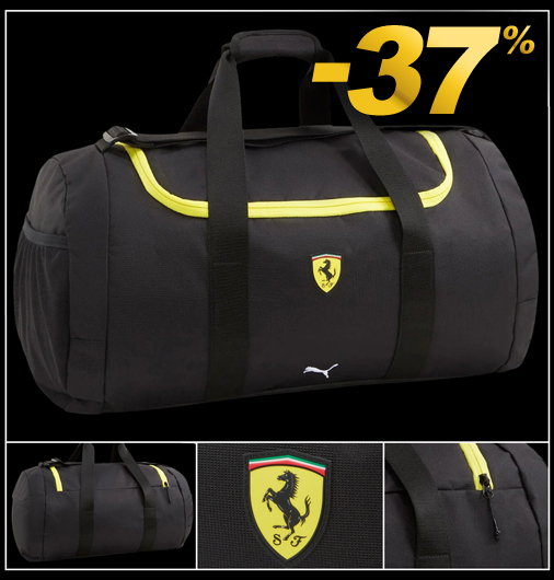 Sac de Sport Ferrari F1 Poignées de transport rembourrées - 1 grande poche principale zippée - 2 poches latérales Matière 100% Polyester - Couleur Noir / Jaune - Bandoulière ajustable Puma 701228019-001