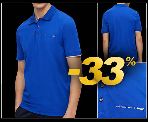 Polo homme Porsche x BOSS Matière Tissu interlock 100% coton mercerisé très doux - Couleur Bleu Col 95% Polyester 5% Élasthanne - Boutons BOSS métal brillant Col mao et passepoils contrastants - Patte de boutonnage invisible BOSS PENNROSE 260_PS 50486203_433