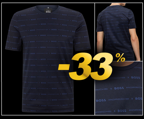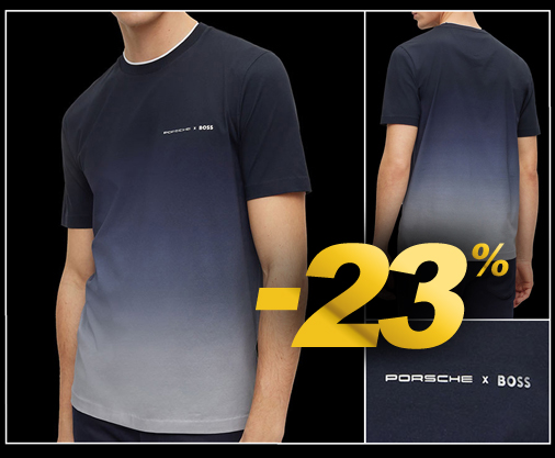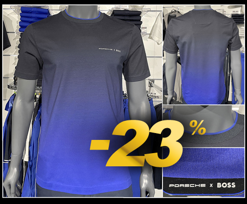 T-shirt homme Porsche x BOSS Matière 93% Coton / 7% Élasthanne - Propriétés d’évacuation de l’humidité Col 95% Polyester / 5% Élasthanne - Couleur Bleu foncé BOSS TIBURT 360_PS 50486234_404