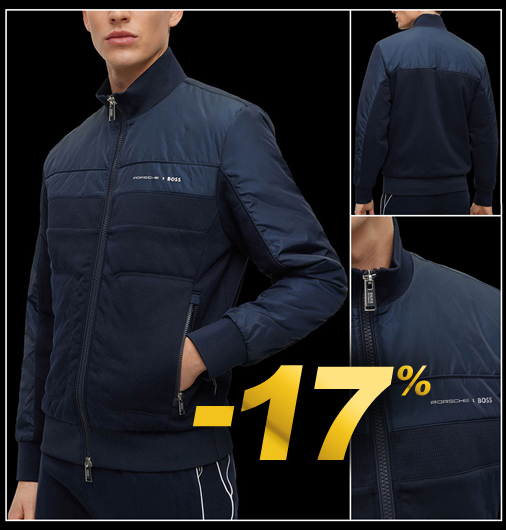 Veste homme Porsche x BOSS Matière 100% coton biologique certifié - Couleur Bleu foncé Garnissage 100% Polyester (recyclé à 80%) - Ornement 100% Polyamide (recyclé) Capuche réglable par cordon - 2 poches latérales BOSS GESSETTO_PS 50489069_404
