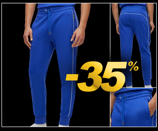 Pantalon homme Porsche x BOSS Matière 86% Coton / 14% Polyester - Cheville 95% Polyester / 5% Élasthanne Tissu interlock riche en coton mercerisé - Couleur Bleu - Cordon de serrage 2 poches latérales - Finition déperlante protectrice BOSS LAMONT 260_PS 50486275_433