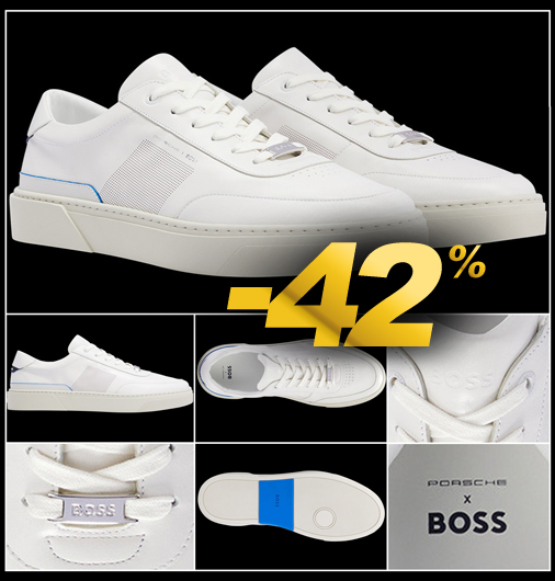 Chaussures en cuir homme Porsche x BOSS Matière 100% Cuir de vachette / veau - Couleur Blanc Open Semelle 90% Élastomère / 10% polyurethane - Coupe basse low cut et lacets plats Panneaux perforés côté et dessus - Made in Italy BOSS GARY_TENN_GT4 50492628_112