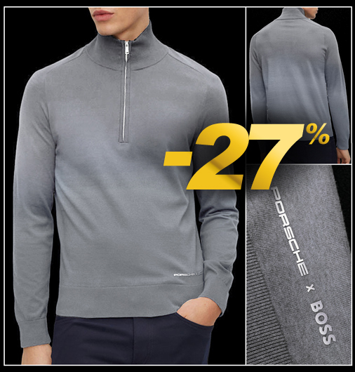Pull homme Porsche x BOSS Matière 100% Coton bio certifié - Couleur Gris - Poignets côtelés Pull à encolure zippée au style athlétique BOSS GESSO_PS 50489070_041