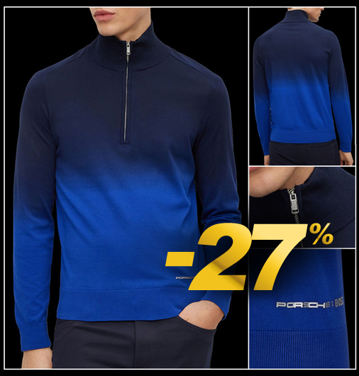 Pull homme Porsche x BOSS Matière 100% Coton bio certifié - Couleur Bleu - Poignets côtelés Pull à encolure zippée au style athlétique BOSS GESSO_PS 50489070_433