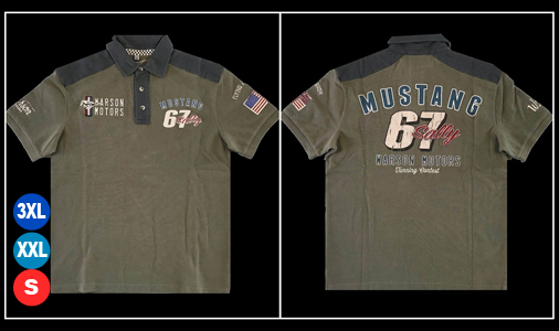 Polo homme Warson Mustang Sally 67 - Tailles S / XXL / 3XL seulement Matière 100% Coton - Couleur Kaki - Effet matelassé sur les épaules Warson Motors 18025 94,95 € TTC / Incl. Taxes