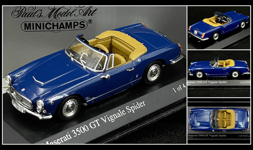 Maserati 3500 GT Vignale Spider 1961 Bleu Foncé 1/43 - Minichamps 400123230 Edition limitée - 4032 exemplaires 79,95 € TTC / Incl. Taxes