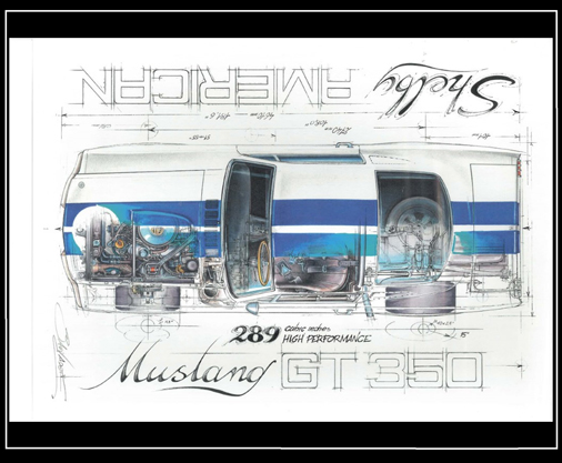 Posters Ford Mustang GT350 1965 Reproduction de peintures originales de Sebastien Sauvadet 30 x 40 cm - Papier 250 g/m2 39,95 € TTC / Incl. Taxes