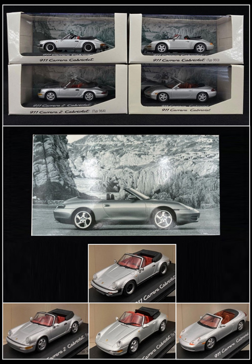 RARE Set of 4 Porsche 911 Cabriolet SC / 964 / 993 / 996 - 1 : 43