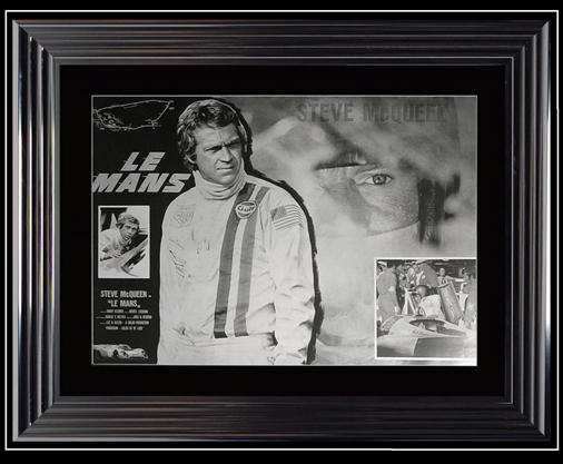Poster Steve McQueen Le Mans 1970 Dimension 74 x 94 cm - Composition à partir de l'affiche du film "Le Mans" Cadre de grande qualité avec finition brillante 149,95 € TTC / Incl. Taxes