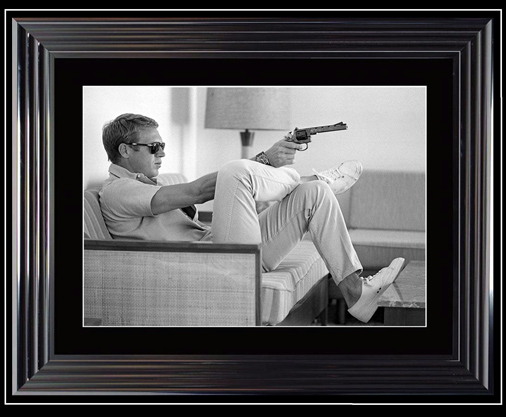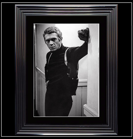 Poster Steve McQueen Bullit 1968 Dimension 74 x 94 cm - Photo de tournage du film "Bullit" de 1968 Cadre de grande qualité avec finition brillante 149,95 € TTC / Incl. Taxes
