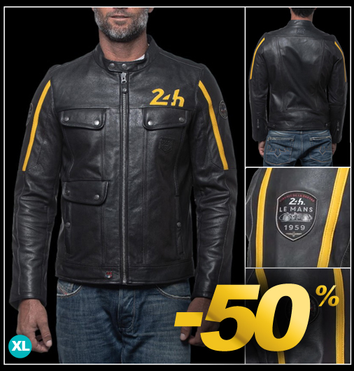 Veste en cuir homme 24h Le Mans - Taille XL seulement Matière 100% cuir d'agneau de qualité - Doublure 100% Coton / Manches Polyester Couleur Noir - Coupe Regular - Col pressionné - Fermeture zippée 2 poches boutonnées - 2 poches poitrine - 2 poches intérieur Classic Legend Motors 27271-1504