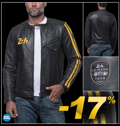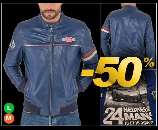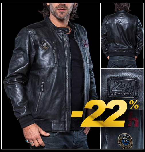 Veste en Cuir homme 24h Le Mans Matière 100% cuir de mouton - 2 Couleurs disponibles - Col pressionné Fermeture zippée - 2 Poches latérales zippées Classic Legend Motors 27499