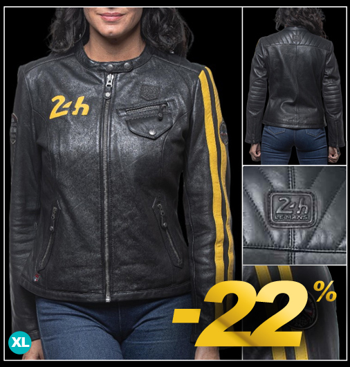 Veste en cuir femme 24h Le Mans - Tailles S / M / L seulement Matière 100% cuir d'agneau de qualité - Doublure 100% Coton / Manches Polyester Couleur Noir - Coupe Regular - Col pressionné - Fermeture zippée 2 poches boutonnées - 1 poche poitrine - 2 poches intérieur Classic Legend Motors 27275-1504