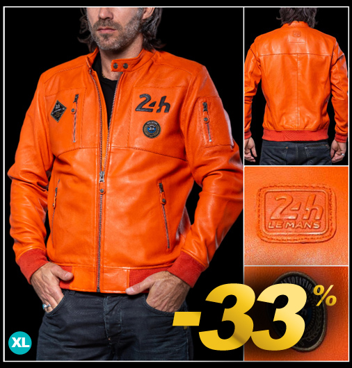 Veste en Cuir homme 24h Le Mans Matière 100% cuir de mouton - Couleur Orange - Col pressionné Fermeture zippée - 2 Poches latérales zippées 1 poche sur la poitrine et 1 sur la manche Classic Legend Motors 27477-2090