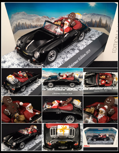 Porsche 356 Cabriolet - Christmas Edition 2019 Edition spéciale avec père Noel, bonhomme en pain d'épice et renne Noir 1/43 - Schuco 450268700 69,95 € TTC / Incl. Taxes