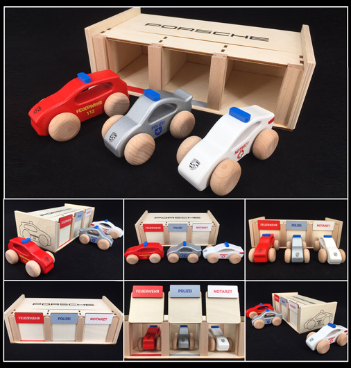 Porsche children's wooden garage With 3 cars