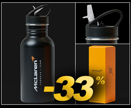 Gourde McLaren F1 Team Couvercle tournant sécurisé et étanche - Couleur Noir - Contenance 450 ml Paille qui s'ouvre facilement - Matière Acier inoxydable / Plastique McLaren 2045M1