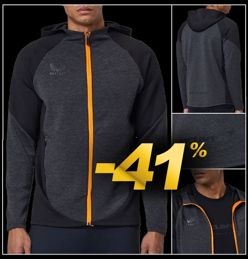 Hoodie homme McLaren F1 Veste à capuche - Matière 50% viscose / 45% Polyester /5% Elasthanne Fermeture par zip - 2 poches latérales zippées - Couleur Noir / Anthracite / Orange McLaren F1 Team TM1006