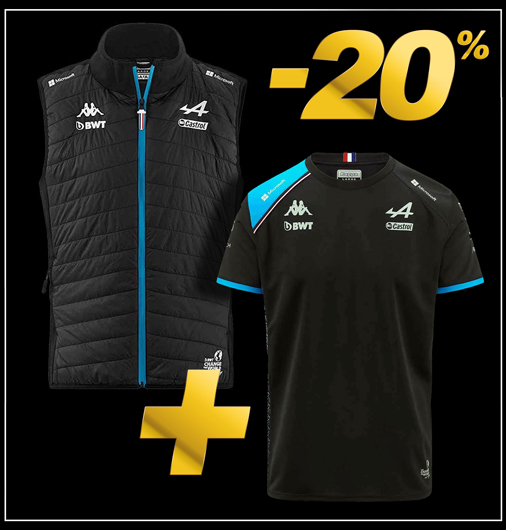 Duo T-shirt + Veste sans manches homme Alpine F1 Couleur Noir / Bleu - Matière T-shirt 100% Polyester Matière Veste 88% Polyester / 12% Polyuréthane Kappa 341D2LW-005 + 311E2PW-A12