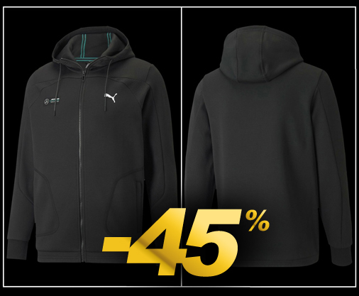 Hoodie homme Mercedes-AMG Fermeture par zip - Capuche réglable - 2 poches latérales Matière 60% Coton / 40% Polyester - Couleur Gris Puma 534906-02