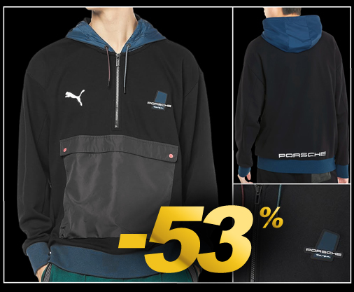 Hoodie homme Porsche Targa by Puma Couleur Noir / Bleu - Matière 68% Coton / 32% Polyester Fermeture par Zip - 1 grande poche ventrale Puma 531952-01