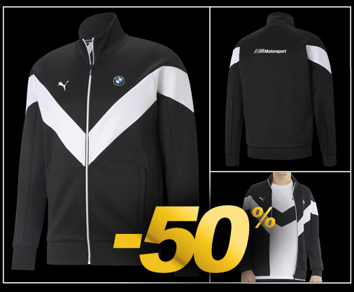 Veste Homme BMW Motorsport by Puma Couleur Noir / Blanc - Fermeture par Zip - Poches latérales zippées Matière 66% Polyester / 34% Coton - Col droit / Poignets et taille côtelés Puma 599503-01