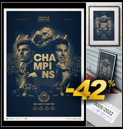 Poster Red Bull F1 World Champion 2022 Par l'équipe d'artiste The Automobilist 50 x 70 cm - Papier 175g/m2 - Cadre non fourni Edition limitée - 2022 exemplaires numérotés