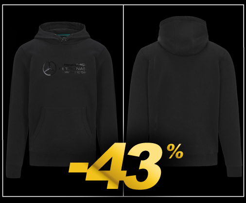 Hoodie homme Mercedes-AMG F1 Matière 80% Coton / 20% Polyester - Couleur Noir Poche kangourou - Capuche réglable Mercedes 701219498-001