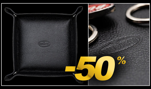 Vide poche de bureau Bugatti Plateau en cuir avec coins relevés - Boutons pression maintenant les coins Dimensions 20 x 20 cm - Couleur Noir Bugatti BGT086-100