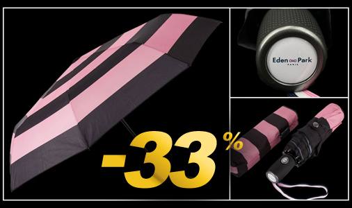 Parapluie Eden Park Mécanisme automatique - Poignée ergonomique - Couleur Gris Foncé / Rose - Diamètre 50 cm Toile 100% polyester - Longueur ouvert 55 cm - Housse de rangement imperméable Eden Park HEAHTPAE0002