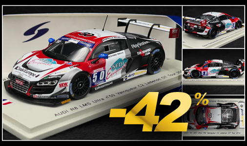 Audi R8 LMS n°50 - Vainqueur C2 Ledenon GT Tour 2014 1/43 - Spark SF076 Edition Limitée - 400 exemplaires numérotés