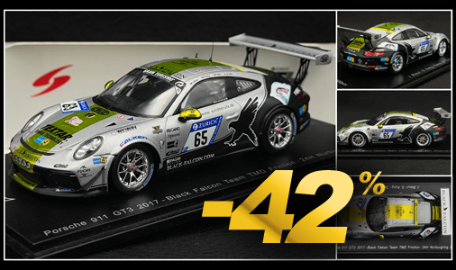 Porsche 911 GT3 Black Falcon n°65 - 24h Nürburgring 2017 1/43 - Spark SG327 Edition Limitée - 300 exemplaires numérotés