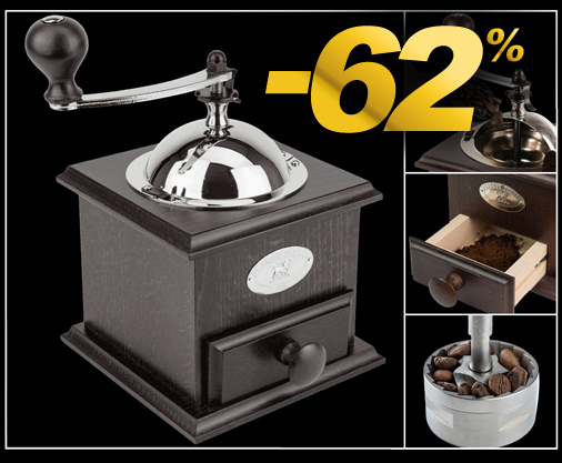 Moulin à Café Manuel Peugeot Mécanisme en acier redoutable, garanti sans limitation de durée - Tiroir de récupération Matière Bois de Hêtre laqué - Trémie fermée Réglage de votre mouture par molette