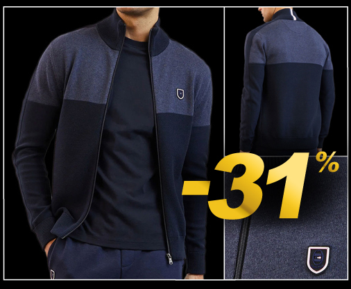 Cardigan zippé homme Eden Park Matière 100% Coton - Couleur Bleu - Fermeture zippée Jeu de mailles 2 tons - Col montant Eden Park H23MAICA0013
