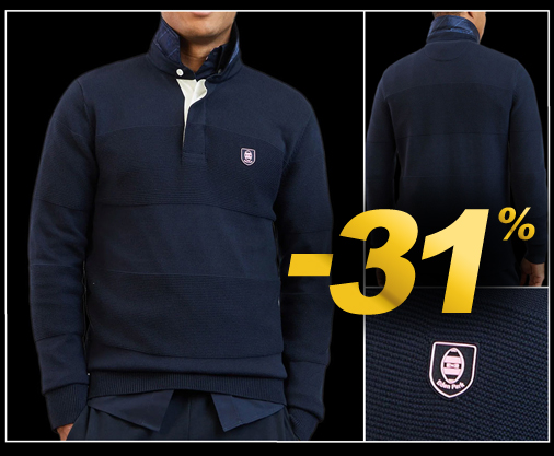Pull homme Eden Park Matière 100% Coton - Couleur Bleu - Col polo en twill trois boutons Eden Park H23MAIPU0006