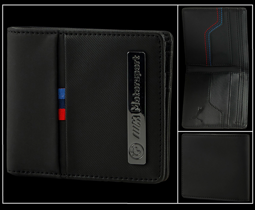 Portefeuille BMW Motorsport Logo BMW métallique - 2 compartiments billets - Plusieurs porte-cartes Matière 100% Polyuréthane - Dimensions 11 x 9 cm - Couleur Noir Puma 054298-01 34,95 € TTC / Incl. Taxes