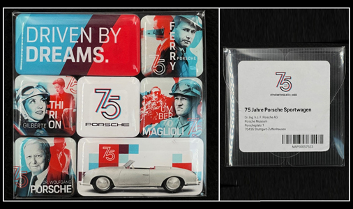 Set 7 aimants Porsche 75ème Anniversaire Driven by Dreams 5 x 2.5 cm - Ferry Porsche 2.5 x 2.5 cm Gilberte Thirion 2.5 x 2.5 cm - Umbert Maglioli 2.5 x 2.5 cm Dr Wolfgang Porsche 2.5 x 2.5 cm - Porsche 356 Nr 1 5 x 2.5 cm Logo 75 ans Porsche 2.5 x 2.5 cm - Matière métal Porsche MAP50057523 8,95 € TTC / Incl. Taxes