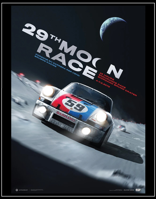 Poster Porsche 911 Carrera RSR n°59 - Futur - 29e Course sur la Lune 2078 50 x 70 cm - Impression sur papier 175g/m² Edition limitée - 911 exemplaires 119,95 € TTC / Incl. Taxes