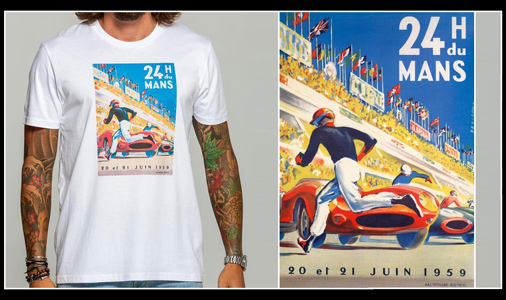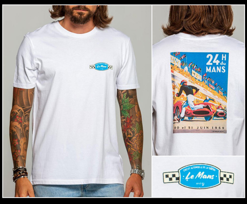 Men's T-shirt 24h du Mans 1959 Matière 100% coton biologique - Couleur Blanc Reproduction de l'affiche d'époque sur le dos Licence officielle 24h Le Mans