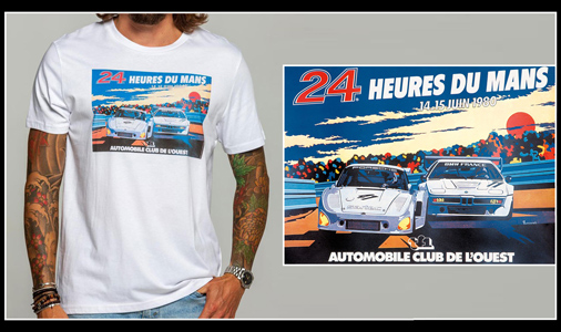 Men's T-shirt 24h du Mans 1980 Matière 100% coton biologique - Couleur Blanc Reproduction de l'affiche d'époque sur le devant Licence officielle 24h Le Mans