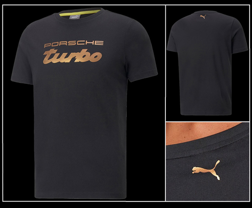 T-shirt homme Porsche Turbo by Puma Couleur noir / or - Matière 100 % coton Puma 536729-01 49,95 € TTC / Incl. Taxes