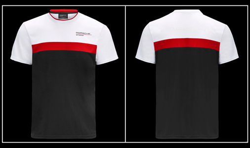T-shirt homme Porsche Motorsport Tissu élastique confortable et respirant - Couleur Blanc / Noir / Rouge Matière 100% polyester - Inscription Porsche sur la poitirne et dans le dos Porsche 49,95 € TTC / Incl. Taxes