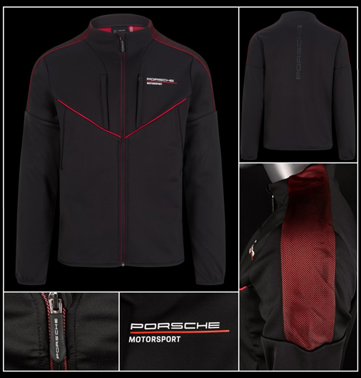 Veste homme Porsche Motorsport Coupe vent et imperméable / effet déperlant - Matière 86 % polyester / 14 % Elasthanne 2 grandes poches côté et 2 poche poitrine zippées - Doublure 100% Polyester Veste Softshell doublure polaire extra douce - Couleur Noir / Rouge Fermeture par zip - Porsche WAP120NFMS 139,95 € TTC / Incl. Taxes