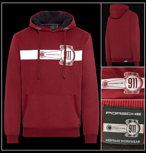Hoodie homme Porsche 911 Bielle Capuche douce, doublée et réglable par cordon de serrage - Poche kangourou Matière : 65% coton / 35% polyester - Taille et manches côtelées Couleur Rouge Bordeaux - Porsche WAP673PESS 139,95 € TTC / Incl. Taxes
