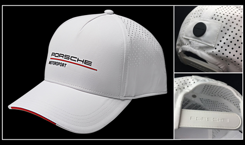Casquette Porsche Motorsport Taille réglable par picots rigides - Doublure tour de tête éponge Perforée micro-aérée coté et arrière Couleur blanc - Matière 100 % polyester Porsche WAP8000030LFMS 29,95 € TTC / Incl. Taxes