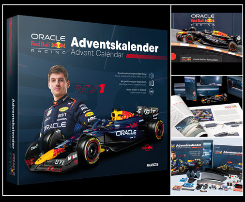 Calendrier de l'Avent - Max Verstappen Red Bull RB20 F1 Calendrier de l’Avent en 24 étapes - Assemblage sans colle - Livret d'accompagnement Socle avec module sonore intégré : Son original d'un moteur Red Bull RB20 Miniature Red Bull RB20 F1 2024 - 1/43 Requiert 2 piles 1,5 V (AA) non-incluses Franzis 67245 69,95 € TTC / Incl. Taxes