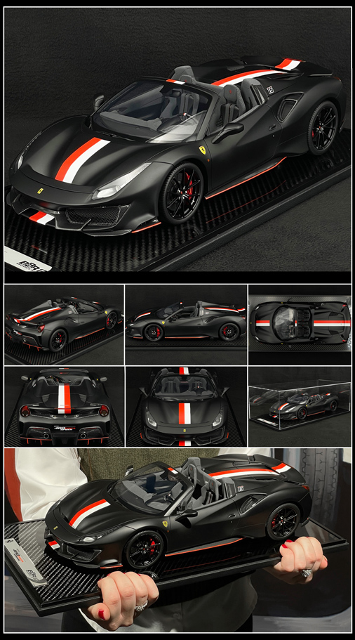 Charles Leclerc Ferrari 488 Pista Spider 2018 Livrée spéciale noire mate avec bandes emblématiques issues du drapeau Monégasque 1/12 - BBR Models BBR1225CL Edition Limitée - 46 exemplaires numérotés 1349,95 € TTC / Incl. Taxes